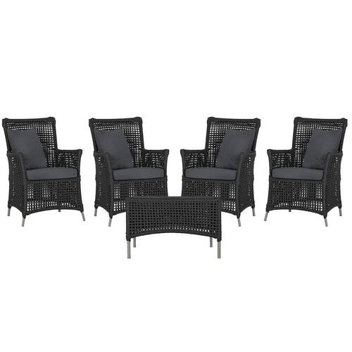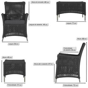 4 Poltronas e 1 Mesa Igapó em Alumínio - Preto