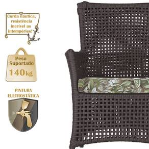A corda náutica adiciona um toque de rusticidade moderna, enquanto o estofado impermeável garante que sua poltrona esteja sempre impecável, mesmo após uma chuva inesperada ou um acidente com líquidos.
