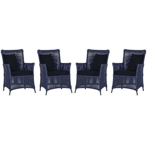 4 Poltronas Igapó Alumínio Pintura Preta Corda Náutica E12 Azul