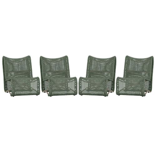 4 Poltronas Texas Em Alumínio Fendi Corda Náutica Trama Verde