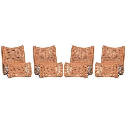 4 Poltronas Texas Em Alumínio Marrom Corda Náutica Trama Terra Cota