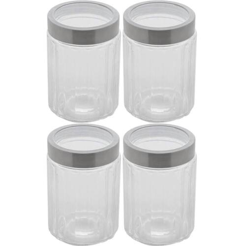 4 Porta Mantimentos de Vidro Borossilicato 1,2L Tampa Prata Pote Transparente Sidney Lyor.