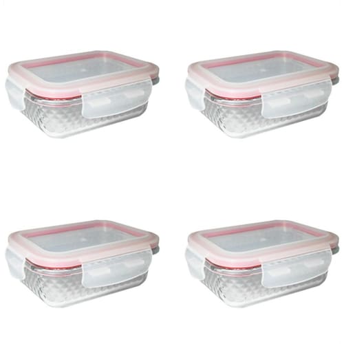 4 Potes De Vidro Diamond Retangular 370Ml Vermelho Hermético