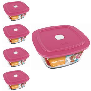 Pote De Vidro Quadrado Com Tampa Marinex 500ml 4 unidades