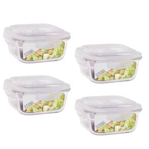 Kit com 4 Potes de Vidro com Tampa Hermética Quadrado 320 ml