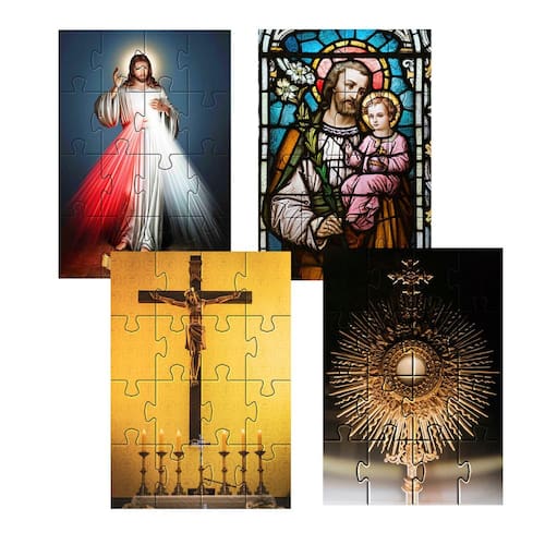 4 Quebra-cabeças 16 peças para idosos tema religião fácil de montar