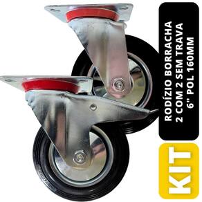 4 Rodízio Borracha 2 Com 2 Sem Trava 6" Pol 160mm Beltools