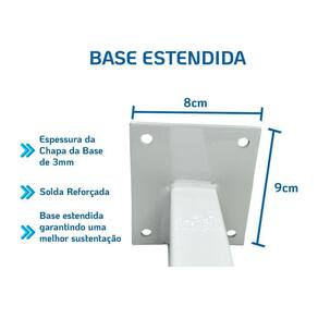 Especificações Técnicas Cor: Branca Pintura Eletrostática Resistencia: até 80 kg por par de suporte Dimensão: 5cm altura x 3cm de largura x 30cm de profundidade Espessura do Metalon: 0.9mm 20 super resistente Espessura da Base: 3mm Acabamento: Plástico