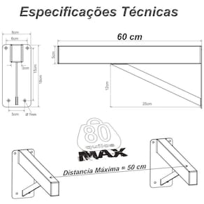 -Quando instalado em par (ou mais) e distribuído em espaços iguais ou inferiores a 50 cm, suporta até 80 kgs/par