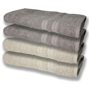 4 Toalhas Felpudas Grande E Grossa Algodão 80x150 Bege+cinza - Única