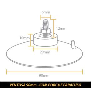 Kit contendo 4 Ventosas de 90mm (9 cm) Em PVC Preto Com Parafuso e Porca
