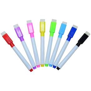 40 Canetas Para Quadro Branco Com Apagador E Imã Cor da tinta: Preto Todas as canetas possuem a tinta de cor preta, apenas as tampas são coloridas as cores das tampas são enviadas de acordo com a disponibilidade em , na ponta da tampa encontra-se uma espuma para apagar e na lateral um imã que permite que grudem em superfícies metálicas. Contém: 40 Canetas para quadro branco 11x1cm com apagador e imã na tampa Marca: Não Informado
