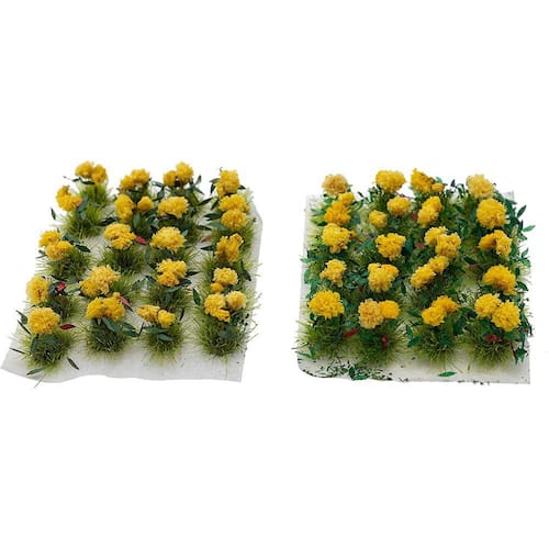 Aparência realista: Tufos de flores em miniatura são requintados em design e detalhes realistas e podem ser s por um longo tempo para tornar seu modelo em miniatura mais vibrante.