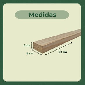 Medidas aproximadas de cada ripa/sarrafo: 2 x 4 X 50 cm (A x L x C)
