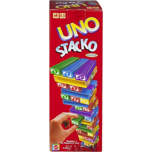 Baseado no famoso jogo de cartas Uno, este jogo possui 45 blocos com diversas cores e numeros que são empilhados.