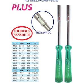 Chave de canhão, haste em aço liga cromo vanádio niquelado, injetada diretamente sob a lâmina, cabo transparente, moldado em pvc rígido, resistente a ácidos, solventes, e a impactos, com ponta sextavada vazada para parafusos com centro sextavado sólido, haste com parte sextavada para maior torque com chave auxiliar, excelente qualidade para trabalhos profissionais pesados Medidas aproximadas do produto - Comprimento: 0,1 cm - Altura: 1 cm - Largura: 0,1 cm - Peso: 500 g