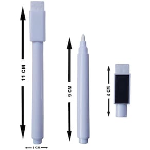 As canetas podem ser usadas em quadro preto, em vidros e em outras superfícies lisas, na ponta da tampa encontra-se uma espuma para apagar e na lateral um imã que permite que grudem em superfícies metálicas.