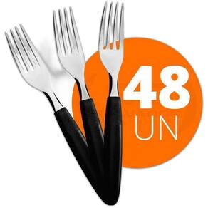 COMPONENTES DO KIT: - 48 Garfo de Mesa Ipanema com Lâmina em Aço Inox e Cabo de Polipropileno Preto - Tramontina 23362400