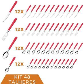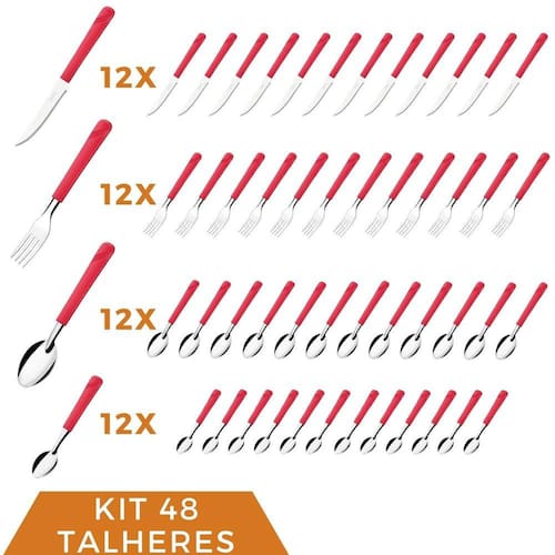 Conjunto de Talheres O conjunto de talheres de mesa da linha Luna inclui garfos, facas e colheres, cada um projetado com atenção aos detalhes e ao conforto. Esses talheres são perfeitos para jantares formais e informais, sendo duráveis e fáceis de limpar e manter. Com sua beleza atemporal e funcionalidade duradoura, o conjunto de talheres de mesa da linha Luna com cabo vermelho é uma escolha inteligente para quem busca qualidade e estilo em seus utensílios de cozinha. Tenha um conjunto completo de talheres para sua mesa, proporcionando praticidade e elegância em todos os momentos.