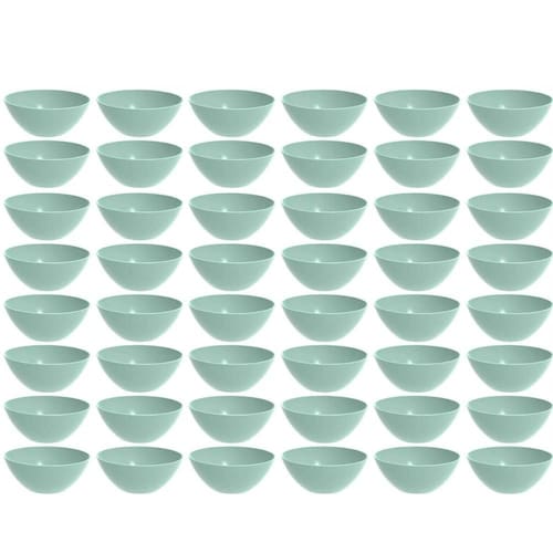 Garantia: 90 dias / Peso de cada: 184g / Cor predominante: verde menta / Referência: 7794462463246; Dimensões de cada: 23,3cm (C) x 8,7cm (A); Capacidade de cada: 2,3L; Conteúdo: 48 tigelas redonda; Material: polipropileno.