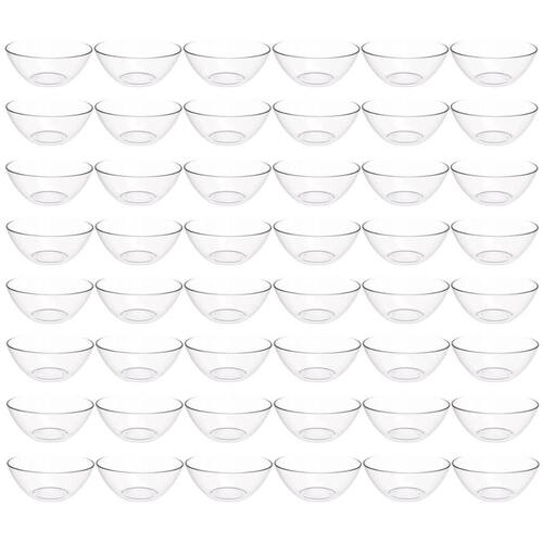 Garantia: 90 dias / Peso total: 8,832kg / Cor predominante: transparente / Referência: 7794462513590; Dimensões de cada tigela: 23,3cm (C) x 8,7cm (A); Conteúdo: 48 tigelas redondas; Capacidade: 2,3L cada; Material: poliestireno.