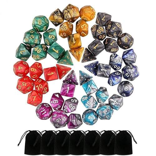 Dados poliédricos de 49 PCS de duas cores para jogos de mesa de masmorras e dragões Especificação: 100% brandnew 49pcs dados e saco 7pcs em um conjunto Mostre suas habilidades de jogo com esses dados de vários lados Um presente perfeito para os amantes de jogos TRPG Escolha de cores como imagem Material: resina Nota: Cor do item exibida nas fotos pode estar mostrando um pouco diferente no monitor do seu computador, pois os monitores não são calibrados da mesma forma. Incluído no pacote: 49 peças de dados+saco 7pcs