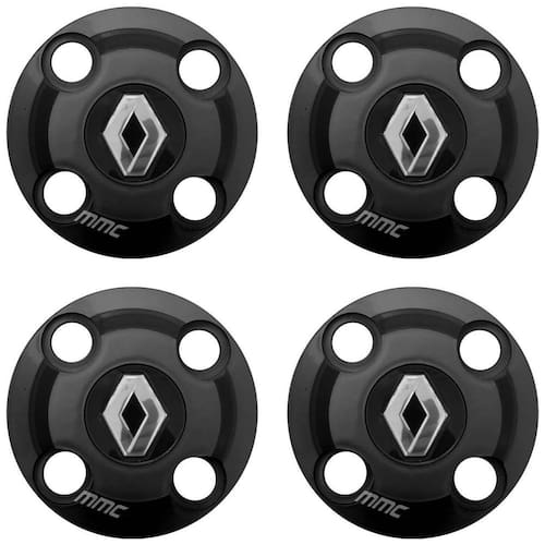 4un Calota Centro Roda Sandero Megane Preto Fosco com Logo Centro de roda produzida em Plástico de alta resistência com excelente revestimento. Possuindo segura e prática aplicação através de encaixe por parafuso.