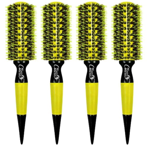 4UN ESCOVA PROFISSIONAL METÁLICA AMARELA 30MM COM CERDAS NATURAIS SANTA CLARA