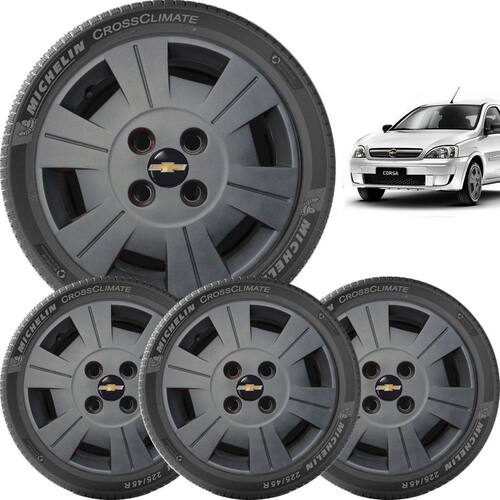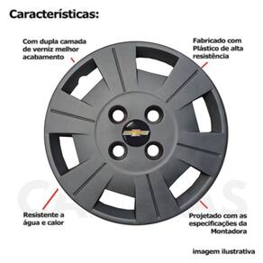 4x Calota Chevrolet Aro 13 Grafite 057cb Bem vindo a multi calotas Dados do produto Referência 057cb Calota para linha Chevrolet Cor: Grafite Aro: 13 Emblema: de alumínio Furação: 4x100 Cubo: baixo Aplicação: parafusada Marca: Grid Aplicável nos seguintes carros: Corsa todos Celta todos Classic todos Marca: Não Informado