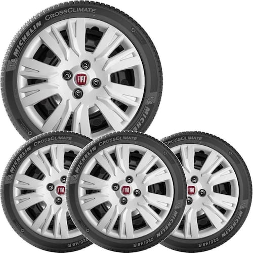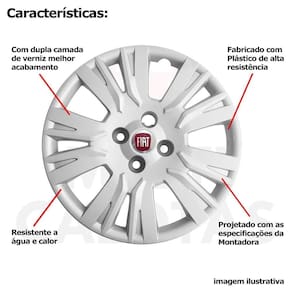 CARACTERÍSTICAS: - Fabricado em Plástico Resistente - Com dupla camada de verniz - Resistente a água e calor - Feito de acordo com os padrões da montadora - Fixação: por Parafusos - Furação: 4x100 - Cubo: Baixo - Cor: Prata - Referência: 221CB - Marca: Grid Calotas