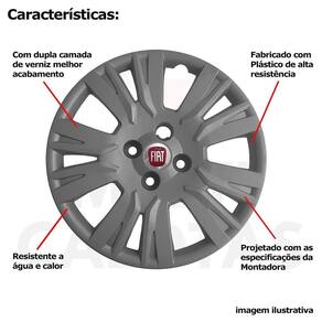 4x Calota Fiat Argo Uno Palio Aro 14 Grafite Emblema 221cb Calota em Plástico de Alta resistência, Fabricado pela Grid Calotas com os mesmos padrões e exigências da montadora. Com logotipo incluso. SERVE: Fiat Novo Uno - Todos Fiat Palio Fire - Todos Fiat Mobi - Todos Fiat Argo - 2017 a 2021 NÃO SERVE: Fiat Strada - cubo de roda incompatível Fiat Palio Adventure - cubo de roda incompatível Fiat Nova Fiorino - cubo de roda incompatível CARACTERÍSTICAS: - Fabricado em Plástico Resistente - Com dupla camada de verniz - Resistente a água e calor - Feito de acordo com os padrões da montadora - Fixação: por Parafusos - Furação: 4x100 - Cubo: Baixo - Cor: Cinza Grafite - Referência: 221CB - Marca: Grid Calotas ITENS INCLUSOS: - Um 1 Kit com quatro 4 calotas para Roda Aro 14 com Emblema Incluso. DIMENSÕES Unitário - Diâmetro: 39 cm - Altura: 4 cm INSTALAÇÃO A instalação é feita de forma simples, podendo ser feita por você mesmo. Não necessita retirar todos os parafusos. de 30 dias para defeitos de fabricação. Marca: Não Informado