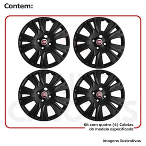 4x Calota Fiat Argo Uno Palio Aro 14 Preto com Emblema 221cb