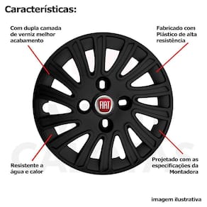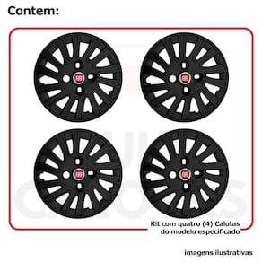 4x calota fiat mille palio siena uno aro 14 preto 093cb Calota em plástico de alta resistência, Fabricado pela grid calotas com os mesmos padrões e exigências da montadora. Com logotipo incluso. Jogo de calotas para a linha fiat para roda de ferro aro 14. Não serve nos fiat strada - fiat palio adventure - fiat nova fiorino Características: - fabricado em plástico resistente - com dupla camada de verniz - resistente a água e calor - feito de acordo com os padrões da montadora - fixação: por parafusos - furação: 4x100 - cubo: baixo - cor: preto - referência: 093cb - marca: grid calotas Itens inclusos: - um 1 kit com quatro 4 calotas com emblema incluso. Dimensões unitário - diâmetro: 39 cm - altura: 4 cm Instalação A instalação é feita de forma simples, podendo ser feita por você mesmo. Não necessita retirar todos os parafusos. de 30 dias para defeitos de fabricação. Marca: Não Informado