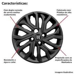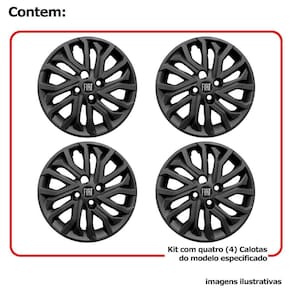 4x calota fiat mobi argo cronos aro 14 black piano 295cb Calota em plástico de alta resistência, Fabricado pela grid calotas com os mesmos padrões e exigências da montadora. Com logotipo incluso.
