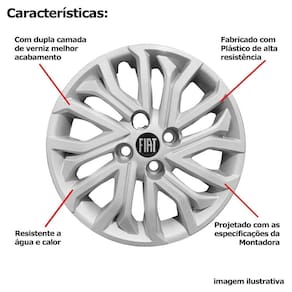 características: - fabricado em plástico resistente - com dupla camada de verniz - resistente a água e calor - feito de acordo com os padrões da montadora - fixação: por parafusos - furação: 4x100 - cubo: baixo - cor: prata - referência: 295cb - marca: grid calotas