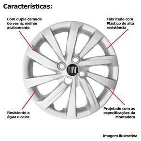4x calota fiat mobi argo cronos aro 15 emblema novo 167cp calota em plástico de alta resistência, fabricado pela grid calotas com os mesmos padrões e exigências da montadora. Com logotipo incluso. Jogo de calotas para a linha fiat para rodas de ferro aro 15. Características: - fabricado em plástico resistente - com dupla camada de verniz - resistente a água e calor - feito de acordo com os padrões da montadora - fixação: por parafusos - furação: 4x100 - cubo: padrão - cor: prata - referência: 167cp - marca: grid calotas