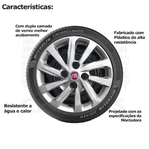 Características: - fabricado em plástico resistente - com dupla camada de verniz - resistente a água e calor - feito de acordo com os padrões da montadora - fixação: por parafuso - cubo: alto - cor: prata - referência: 167ca - marca: grid calotas