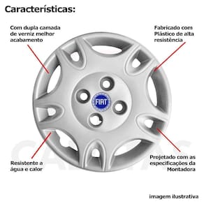 4x calota fiat palio uno mille siena aro 13 com emblem 050cb Calota em plástico de alta resistência, Fabricado pela grid calotas com os mesmos padrões e exigências da montadora. Com logotipo incluso. Jogo de calotas para a linha fiat para roda de ferro aro 13. Não serve nos fiat strada - fiat palio adventure - fiat nova fiorino Características: - fabricado em plástico resistente - com dupla camada de verniz - resistente a água e calor - feito de acordo com os padrões da montadora - fixação: por parafusos - furação: 4x100 - cubo: baixo - cor: prata - referência: 050cb - marca: grid calotas Itens inclusos: - um 1 kit com quatro 4 calotas com emblema incluso. Dimensões unitário - diâmetro: 37 cm - altura: 4 cm Instalação A instalação é feita de forma simples, podendo ser feita por você mesmo. Não necessita retirar todos os parafusos. de 30 dias para defeitos de fabricação. Marca: Não Informado