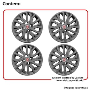 4x calota fiat punto palio grand siena aro 15 grafite 296cp Calota em plástico de alta resistência, Fabricado pela grid calotas com os mesmos padrões e exigências da montadora. Com logotipo incluso.