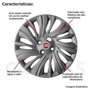 4x Calota Fiat Punto Palio Siena Aro 14 Grafite 224gr Calota em Plástico de Alta resistência, Fabricado pela Grid Calotas com os mesmos padrões e exigências da montadora. Com logotipo incluso. SERVE: Fiat Palio - todos Fiat Uno - todos Fiat Siena - todos CARACTERÍSTICAS: - Fabricado em Plástico Resistente - Com dupla camada de verniz - Resistente a água e calor - Feito de acordo com os padrões da montadora - Fixação: por Parafusos - Furação: 4x100 - Cubo: Padrão - Cor: Cinza Grafite - Referência: 224cb - Marca: Grid Calotas ITENS INCLUSOS: - Um 1 Kit com Quatro 4 Calotas com Emblema Incluso. DIMENSÕES Unitário - Diâmetro: 41 cm - Altura: 4 cm INSTALAÇÃO A instalação é feita de forma simples, podendo ser feita por você mesmo. Não necessita retirar todos os parafusos. de 30 dias para defeitos de fabricação. Marca: Não Informado
