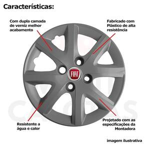 4X Calota Fiat Siena Aro 14 Grafite Emblema 160Cb