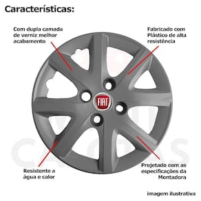 Calota em Plástico de Alta resistência, Fabricado pela Grid Calotas com os mesmos padrões e exigências da montadora. Com logotipo incluso. SERVE: Fiat Palio - todos Fiat Uno - todos Fiat Siena - todos Fiat Fiorino - exceto nova fiorino Fiat 147 - todos Fiat Elba - todos Fiat Oggi - todos Fiat Panorama - todos Fiat Prêmio - todos CARACTERÍSTICAS: - Fabricado em Plástico Resistente - Com dupla camada de verniz - Resistente a água e calor - Feito de acordo com os padrões da montadora - Fixação: por Parafusos - Furação: 4x100 - Cubo: Baixo - Cor: Grafite - Referência: 160cb - Marca: Grid Calotas ITENS INCLUSOS: - Um 1 Kit com Quatro 4 Calotas com Emblema Incluso. DIMENSÕES Unitário - Diâmetro: 39 cm - Altura: 4 cm INSTALAÇÃO A instalação é feita de forma simples, podendo ser feita por você mesmo. Não necessita retirar todos os parafusos. de 30 dias para defeitos de fabricação. Marca: Não Informado