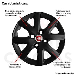 Calota em Plástico de Alta resistência, Fabricado pela Grid Calotas com os mesmos padrões e exigências da montadora. Com logotipo incluso. SERVE: Fiat Palio - todos Fiat Uno - todos Fiat Siena - todos Fiat Fiorino - exceto nova fiorino Fiat 147 - todos Fiat Elba - todos Fiat Oggi - todos Fiat Panorama - todos Fiat Prêmio - todos CARACTERÍSTICAS: - Fabricado em Plástico Resistente - Com dupla camada de verniz - Resistente a água e calor - Feito de acordo com os padrões da montadora - Fixação: por Parafusos - Furação: 4x100 - Cubo: Baixo - Cor: Preto Fosco - Referência: 160cb - Marca: Grid Calotas ITENS INCLUSOS: - Um 1 Kit com Quatro 4 Calotas com Emblema Incluso. DIMENSÕES Unitário - Diâmetro: 39 cm - Altura: 4 cm INSTALAÇÃO A instalação é feita de forma simples, podendo ser feita por você mesmo. Não necessita retirar todos os parafusos. de 30 dias para defeitos de fabricação. Marca: Não Informado