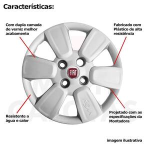 4x Calota Fiat Uno Palio Mobi Way aro 14 156cb Calota em Plástico de Alta resistência, Fabricado pela Grid Calotas com os mesmos padrões e exigências da montadora. Com logotipo incluso. SERVE: Fiat Uno Mille Way 2009 a 2013 Fiat Novo Uno Way 2011 a 2021 Fiat Palio Fire Way 2016 e 2017 Fiat Mobi Way 2017 a 2020 NÃO SERVE: Fiat Strada - cubo de roda incompatível Fiat Palio Adventure - cubo de roda incompatível Fiat Nova Fiorino - cubo de roda incompatível CARACTERÍSTICAS: - Fabricado em Plástico Resistente - Com dupla camada de verniz - Resistente a água e calor - Feito de acordo com os padrões da montadora - Fixação: por Parafusos - Furação: 4x100 - Cubo: Baixo - Cor: Prata - Referência: 156CB - Marca: Grid Calotas ITENS INCLUSOS: DIMENSÕES Unitário - Diâmetro: 39 cm - Altura: 4 cm INSTALAÇÃO A instalação é feita de forma simples, podendo ser feita por você mesmo. Não necessita retirar todos os parafusos. de 30 dias para defeitos de fabricação. SOBRE O ENVIO Envio podendo ser feito até o próximo dia útil após confirmação de pagamento. em até 3 , em caso de boleto POLÍTICA DE TROCA Sempre estamos interessados em sua satisfação. Caso não receba o produto exatamente como no anúncio, com algum defeito ou no transporte, Você poderá trocar e devolver a qualquer momento, sem pressa, sem prazo e principalmente sem custos desde que o produto esteja sem uso e na mesma condição da data da compra . No caso de devolução por compra de tamanho errado, desistência ou mudança de intenção, Neste caso o cliente deve arcar com o custo da devolução da mercadoria e nós arcamos com o custo de reenvio Da mercadoria nova. Eu clicando em comprar 1 unidade equivale 4 calotas Resposta: sim. O emblema é resistente a água e calor Resposta: O emblema é de alta qualidade já aplicado na calota com cola especial. O emblema tem relevo Resposta: Todos emblemas tem um pouco de relevo. A calota pode ser aplicada em outro aro Resposta: Recomendamos a instalação somente no aro correto da calota. Tem Resposta: Sim, total para defeitos de fabricação. Serve eu outro carro além dos descritos no anuncio Resposta: Recomendamos a instalação somente dos carros descritos acima. A calota é resistente Resposta: Sim a calota é bem resistente e com uma ótima camada de verniz. O valor anunciado são quantas peças Resposta: O valor anunciado é referente a 4 calotas. Essa calota é para roda de ferro A foto é real do produto Resposta: Sim, é a foto real do produto apenas com fundo branco. Precisa tirar os 4 parafusos da roda e subir o carro Resposta: Não, só retira 3 parafusos e não precisa subir o carro no macaco.
