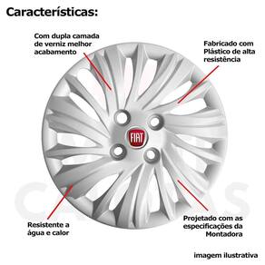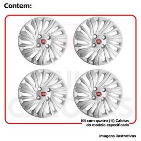 4x Calota Fiat Uno Palio Siena Aro 14 com Emblema 224cb Calota em Plástico de Alta resistência, Fabricado pela Grid Calotas com os mesmos padrões e exigências da montadora. Com logotipo incluso. SERVE: Fiat Palio - todos Fiat Uno - todos Fiat Siena - todos Fiat Fiorino - exceto nova fiorino Fiat 147 - todos Fiat Elba - todos Fiat Oggi - todos Fiat Panorama - todos Fiat Prêmio - todos CARACTERÍSTICAS: - Fabricado em Plástico Resistente - Com dupla camada de verniz - Resistente a água e calor - Feito de acordo com os padrões da montadora - Fixação: por Parafusos - Furação: 4x100 - Cubo: Baixo - Cor: Prata - Referência: 224cb - Marca: Grid Calotas ITENS INCLUSOS: - Um 1 Kit com Quatro 4 Calotas com Emblema Incluso. DIMENSÕES Unitário - Diâmetro: 39 cm - Altura: 4 cm INSTALAÇÃO A instalação é feita de forma simples, podendo ser feita por você mesmo. Não necessita retirar todos os parafusos. de 30 dias para defeitos de fabricação. Marca: Não Informado