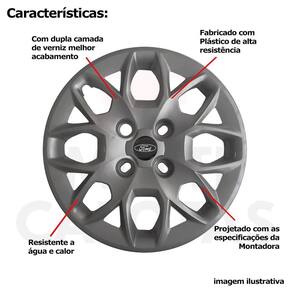 4x Calota Ford Ka Ka Aro 14 Grafite com Emblema 342cb Calota em Plástico de Alta resistência, Fabricado pela Grid Calotas com os mesmos padrões e exigências da montadora. Com logotipo incluso. SERVE: Ka - a partir de 2015 Ka+ - a partir de 2015 CARACTERÍSTICAS: - Fabricado em Plástico Resistente - Com dupla camada de verniz - Resistente a água e calor - Feito de acordo com os padrões da montadora - Fixação: por Parafusos - Furação: 4x108 - Cubo: Baixo - Cor: Cinza Grafite - Referência: 342cb - Marca: Grid Calotas ITENS INCLUSOS: - Um 1 Kit com Quatro 4 Calotas com Emblema Incluso. DIMENSÕES Unitário - Diâmetro: 39 cm - Altura: 4 cm INSTALAÇÃO A instalação é feita de forma simples, podendo ser feita por você mesmo. Não necessita retirar todos os parafusos. de 30 dias para defeitos de fabricação. SOBRE O ENVIO Marca: Não Informado