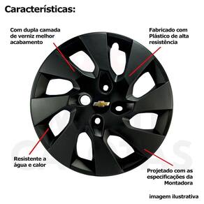 4X Calota Gm Corsa Prisma Onix Aro 14 Preto 133Cb