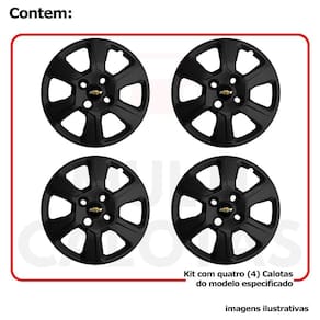 CARACTERÍSTICAS: - Fabricado em Plástico Resistente - Com dupla camada de verniz - Resistente a água e calor - Feito de acordo com os padrões da montadora - Fixação: por Parafusos - Furação: 4x100 - Cubo: Baixo - Cor: Preto - Referência: 370cb - Marca: Grid Calotas