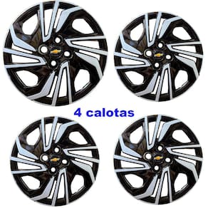 4x calota gm onix e prisma 2023/24 aro 15 black/silver Calota em plástico de alta resistência, Fabricado pela top mix com os mesmos padrões e exigências da montadora. Com logotipo incluso.