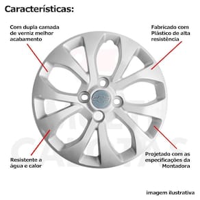 4x Calota Gm Onix Prisma Aro 14 com Emblema Cinza 374cb Calota em Plástico de Alta resistência, Fabricado pela Grid Calotas com os mesmos padrões e exigências da montadora. Com logotipo incluso. SERVE: GM Onix - 2017/20 exceto joy GM Prisma - 2017/20 exceto joy CARACTERÍSTICAS: - Fabricado em Plástico Resistente - Com dupla camada de verniz - Resistente a água e calor - Feito de acordo com os padrões da montadora - Fixação: por Parafusos - Furação: 4x100 - Cubo: Baixo - Cor: Prata - Referência: 374CB - Marca: Grid Calotas ITENS INCLUSOS: - Um 1 Kit com Quatro 4 Calotas com Emblema Incluso. DIMENSÕES Unitário - Diâmetro: 39 cm - Altura: 4 cm INSTALAÇÃO A instalação é feita de forma simples, podendo ser feita por você mesmo. Não necessita retirar todos os parafusos. de 30 dias para defeitos de fabricação. SOBRE O ENVIO Marca: Não Informado Ean: 7890055453219